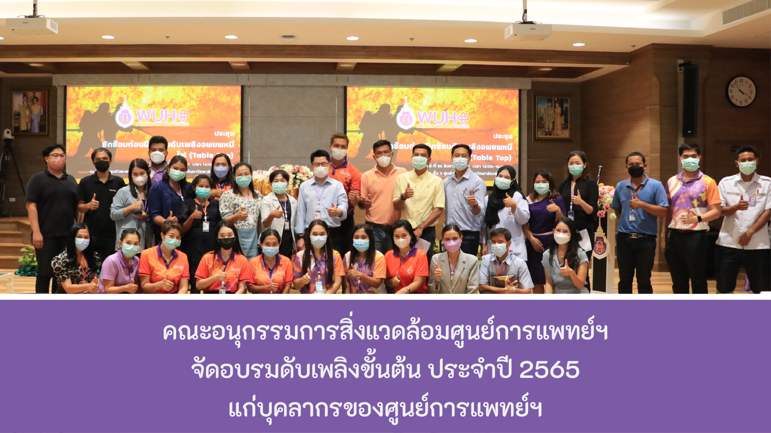 เมื่อวันที่ 26 สิงหาคม 2565 คณะอนุกรรมการสิ่งแวดล้อมศูนย์การแพทย์ฯ ได้จัดอบรมดับเพลิงขั้นต้น ณ ห้องประชุมหัวตะพาน ชั้น 3 โดยมี ผศ.กำไล สมรักษ์ รักษาการแทนรองผู้อำนวยการฝ่ายเครือข่ายสัมพันธ์ และรักษาการแทนรองผู้อำนวยการฝ่ายบริหาร ผศ.ดร.จิรพัฒน์ นาวารัตน์ เข้าร่วมอบรมกับบุคลากรและเจ้าหน้าที่ในครั้งนี้ด้วย