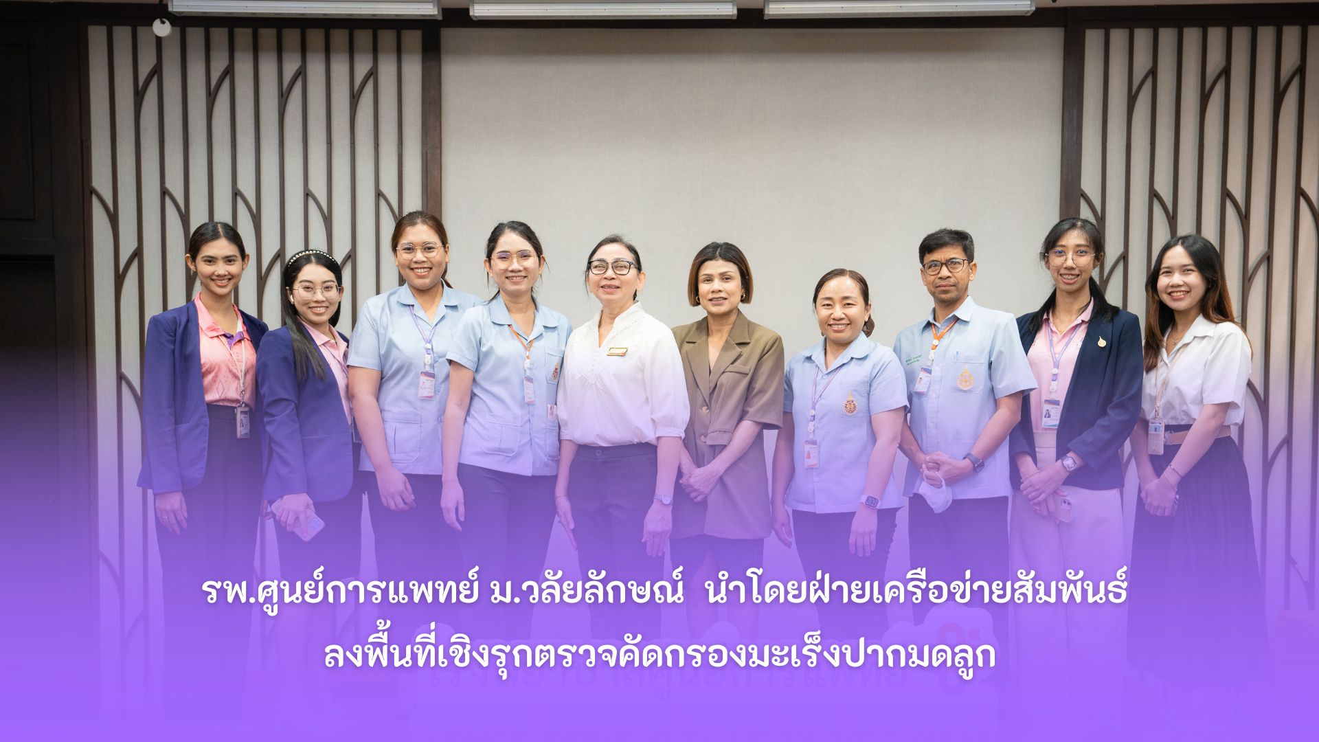 วันที่ 27 กุมภาพันธ์ 2567 ที่ผ่านมา รพ.ศูนย์การแพทย์ ม.วลัยลักษณ์ นำโดยฝ่ายเครือข่ายสัมพันธ์แผนกสร้างเสริมสุขภาพ แผนกเวชกรรมสังคม และแผนกประชาสัมพันธ์ ลงพื้นที่เชิงรุกตรวจคัดกรองมะเร็งปากมดลูก ณ โรงแรมทวินโลตัส โดยมีผู้สนใจเข้าตรวจกว่า 40 ราย