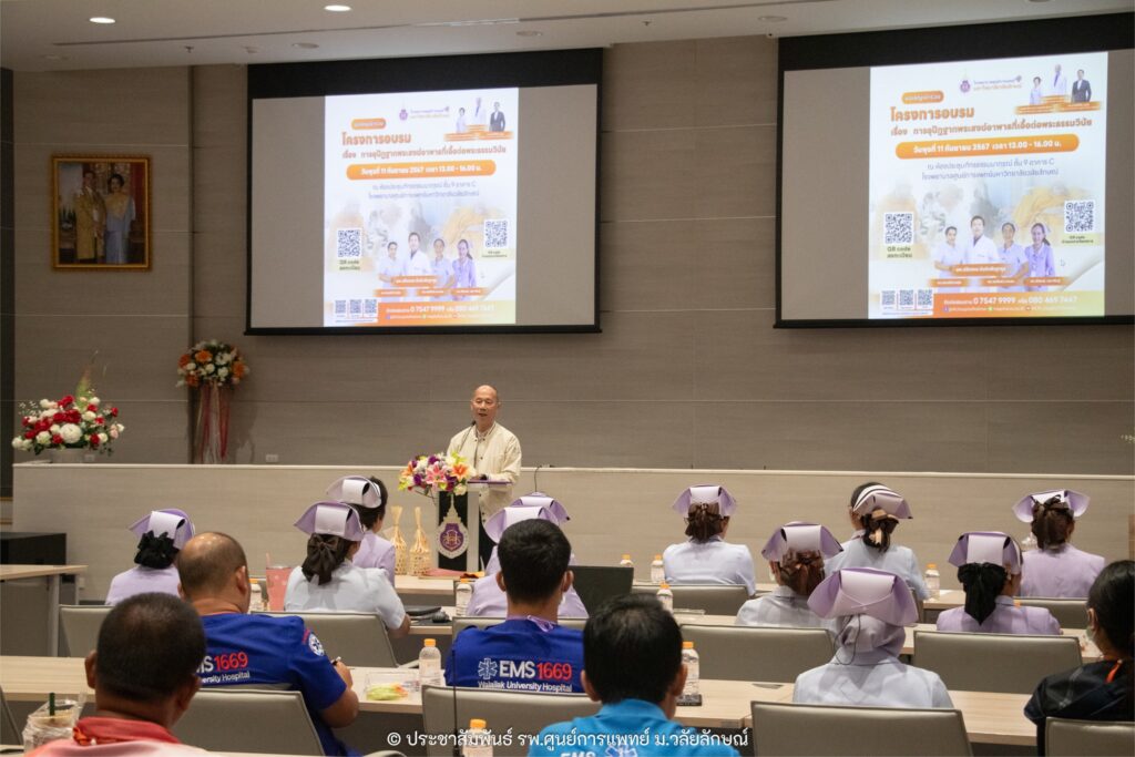 วันที่ 11 กันยายน 2567 โรงพยาบาลศูนย์การแพทย์มหาวิทยาลัยวลัยลักษณ์ จัดโครงการอบรมเรื่อง “การอุปัฏฐากพระสงฆ์อาพาธที่เอื้อต่อพระธรรมวินัย” พร้อมเสวนา การพัฒนา โรงพยาบาลในการดูแลพระสงฆ์อาพาธ การอบรมครั้งนี้มี นพ.ปรัตถกร ตันติวชิรฐากูร รักษาการแทนผู้อำนวยการตึกสงฆ์อาพาธ“ศรีธรรมราชา” เป็นวิทยากรหลัก และมีการเสวนาโดย พว.พรทิพย์ นาคเสน พว.พัชรพร เลขาพันธ์ และพว.ศรวณีย์ คงขุ่ย