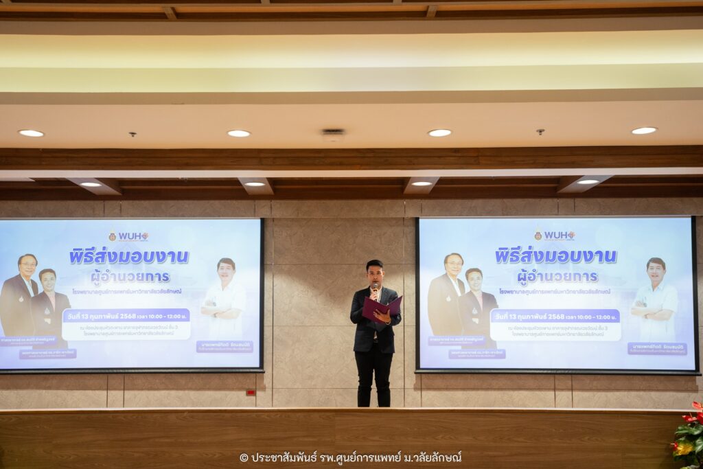 พิธีส่งมอบงานจัดขึ้น ณ ห้องประชุมหัวตะพาน โรงพยาบาลศูนย์การแพทย์ ฯ โดยมีแขกผู้มีเกียรติร่วมแสดงความยินดีกว่า 500 ราย อาทิ คุณศิริพัฒ พัฒกุล และคุณไกรศร วิศิษฎ์วงศ์ อดีตผู้ว่าราชการจังหวัดนครศรี ฯ นพ.นพพร ชื่นกลิ่น อดีตผู้อำนวยการองค์การเภสัชกรรมและอดีตนายแพทย์ สสจ.จังหวัดนครศรี ฯ นพ.ปริพนท์ จุลเจิม นายแพทย์ สสจ.จังหวัดนครศรี ฯ หัวหน้าส่วนราชการ พร้อมด้วยคณะผู้บริหาร บุคลากรทางการแพทย์ และเจ้าหน้าที่จากหน่วยงานต่าง ๆ
