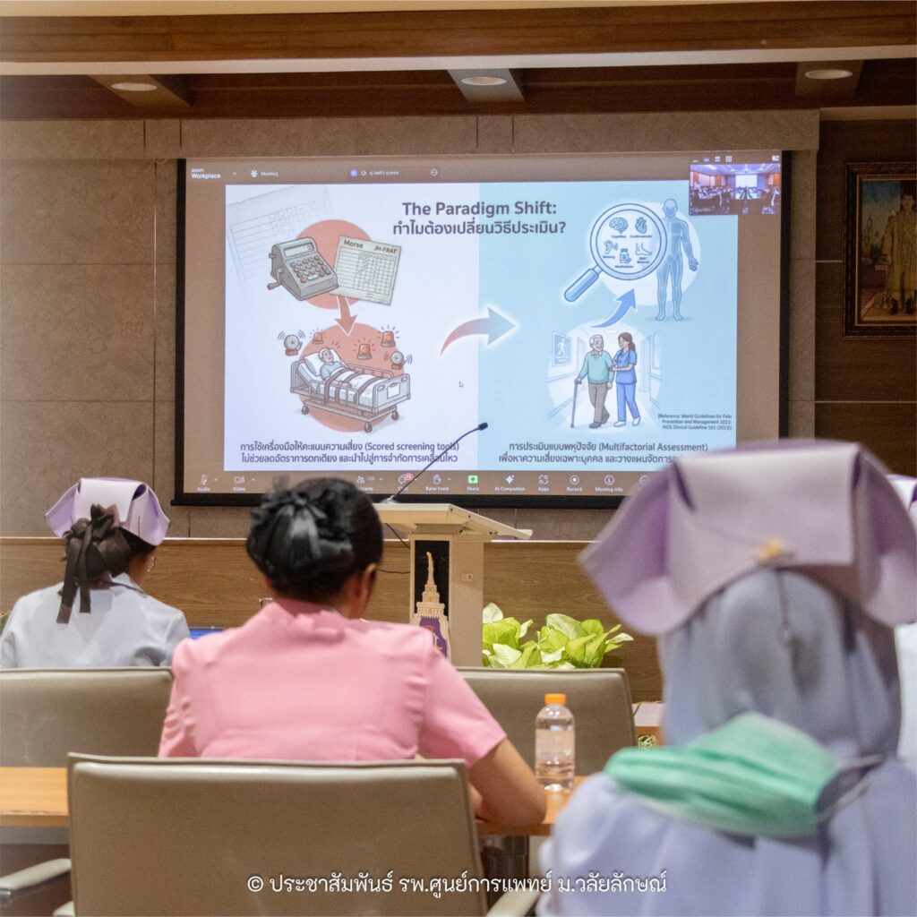 วันนี้ (9 มีนาคม 2569) กลุ่มงานด้านการพยาบาล โรงพยาบาลศูนย์การแพทย์มหาวิทยาลัยวลัยลักษณ์ จัดประชุมวิชาการการป้องกันพลัดตกหกล้มของผู้ป่วยในโรงพยาบาล โดยมี พว.นงนภัส เพชรกูล รักษาการแทนรองผู้อำนวยการฝ่ายการพยาบาล กล่าวเปิดการประชุม ณ ห้องประชุมหัวตะพาน อาคารจุฬาภรณเวชวัฒน์